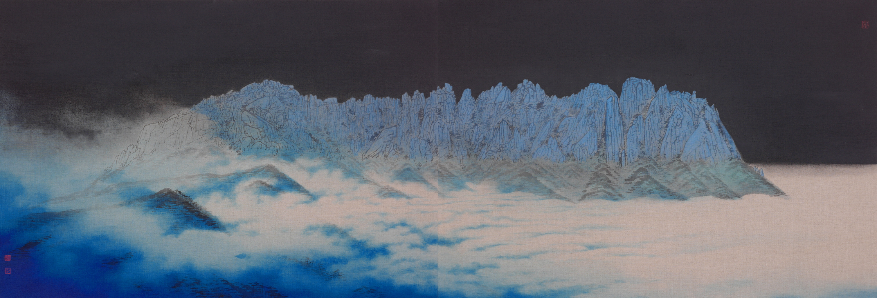 µ¿½Ã´ë ÀÛ°¡µéµµ Á¤¼±ÀÌ ÀÌ·èÇÑ Áø°æÀÇ Çü½Ä°ú ¾ç½ÄÀ» ÇнÀÇß°í À̸¦ Åä´ë·Î ÇöÀå »ç»ýÀ» ½ÇõÇÏ¸é¼ µ¶ÀÚÀûÀΠâÀÛ ¿µ¿ªÀ» ÆîÃijª°¬´Ù. ÀÌ·¯ÇÑ ¹ý°íâ½ÅÀ» ½ÇÇöÇÑ ´ëÇ¥ÀûÀÎ ÀÛ°¡¿¡ ±Ý¸ª ±èÇöö(1959~ )ÀÌ ÀÖ´Ù. ±èÇööÀº ÀüÅë ±â¹ý°ú Á¦Àç, È·ÐÀ» öÀúÈ÷ °øºÎÇÑ ´ÙÀ½, À̸¦ Åä´ë·Î ÀÚ¿¬ÀÇ ¿ÜÀû °æ°üÀ» »ö´Ù¸£°Ô Ç¥ÇöÇÑ Çѱ¹È ÀÛ°¡ÀÌ´Ù. ÃÖ±ÙÀÛ <¿ï»ê¹ÙÀ§>´Â ȸé Áß¾Ó¿¡ ±¸¸§°ú ¿î¹«¿¡ È۽ο© º´Ç³Ã³·³ ÆîÃÄÁø ¿ï»ê¹ÙÀ§¸¦ ¹èÄ¡ÇÑ Áø°æ»ê¼öÈÀÌ´Ù. ¹ÙÀ§¿Í »ê¼¼ µî ÀÚ¿¬ °æ°üÀÇ ÀϺθ¦ °Á¶Çϰųª °ú°¨ÇÏ°Ô »ý·«Çß°í ¿î¹«°¡ Áö³ª°¡´Â ÇÏ´ÃÀ» È®ÀåÇÏ¸é¼ ¹«ÇÑÇÑ °ø°£°¨À» ¿¬ÃâÇß´Ù. ÃøÈ÷ ¿ï»ê¹ÙÀ§¿¡´Â °£°áÇÑ ¼öÁ÷ÁØÀ», ±× ¾Æ·¡ ´É¼±¿¡´Â ºÎµå·¯¿î ¹ÌÁ¡ÁØÀ» ±¸»çÇߴµ¥, ÀÌ·¯ÇÑ ´ëºñ´Â Á¤¼±ÀÌ <±Ý°Àüµµ>¸¦ ±×¸± ¶§ ¼±ÅÃÇÑ ¹æ¹ýÀ̱⵵ ÇÏ´Ù.